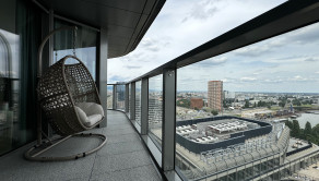 Priestranný byt v unikátnom mrakodrape EUROVEA Tower, situovaný na nábreží Dunaja, sa nachádza na 21. podlaží, ktoré ponúka jedinečné panoramatické výhľady. Top lokalita v tzv. Golden line ponúka maximálny komfort spočívajúci v prepojení bývania so spoločenskými, kultúrnymi a športovými aktivitami dunajského nábrežia. Vstupná lobby s recepciou umožňuje priamy prechod suchou nohou do najvyhľadávanejšieho obchodného centra Eurovea, v ktorom sa nachádza pestrý výber reštaurácií, kino, fitness centrum, supermarkety a viac ako 250 svetových značiek.